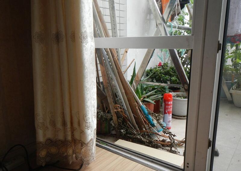 換玻璃這些我可是不會的 找人來拆下了落地窗上的玻璃