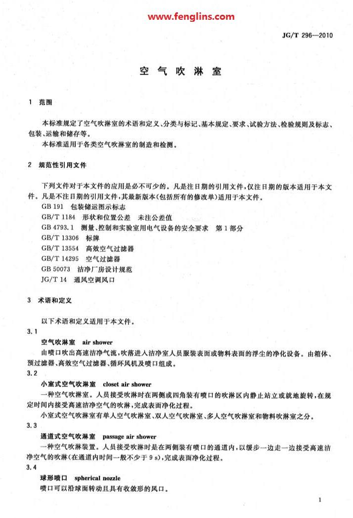 JG∕T 296-2010空氣吹淋室標準(風淋室行業(yè)規(guī)范)